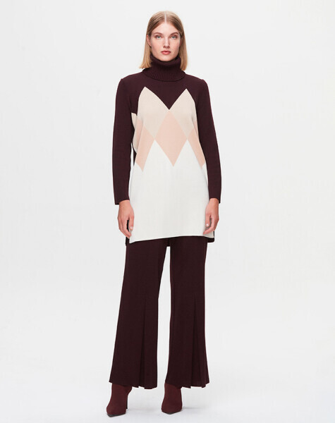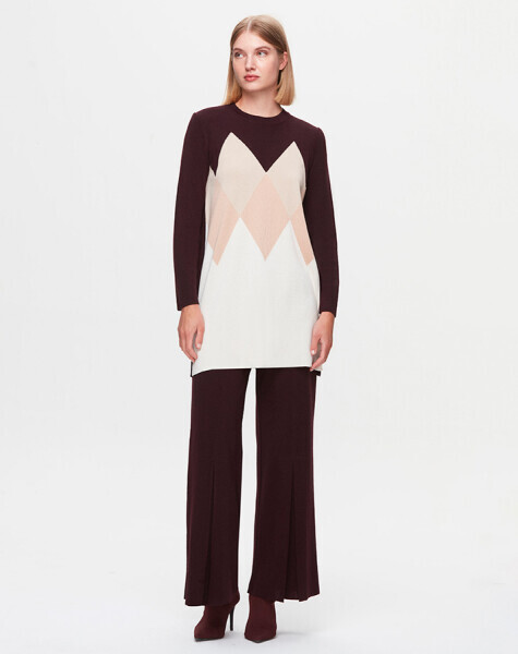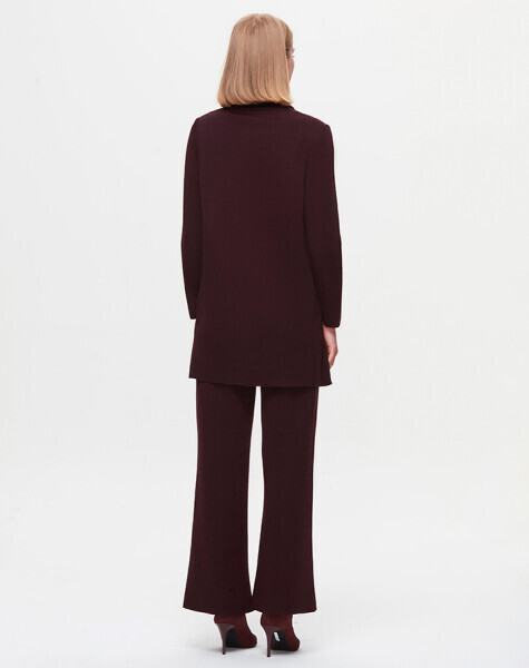 T25K-7014 Önü İspanyolon Kesim Bol Paça Pantolon TROTA-OUBERGİNE