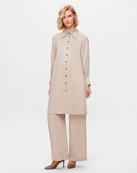 T25K-7015 Bol Paça Cupro Pantolon BEİGE