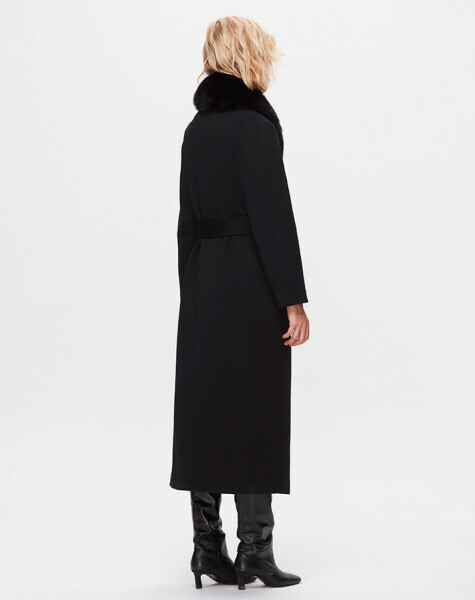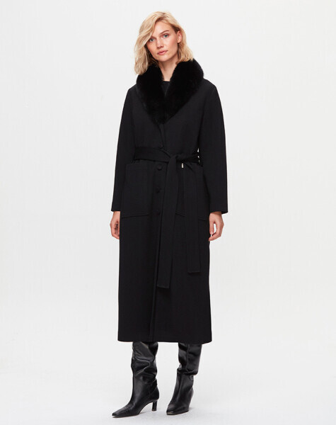 T25K-8000 İki Cepli Beli Kuşaklı Manto BLACK