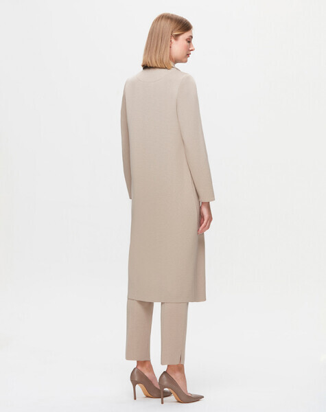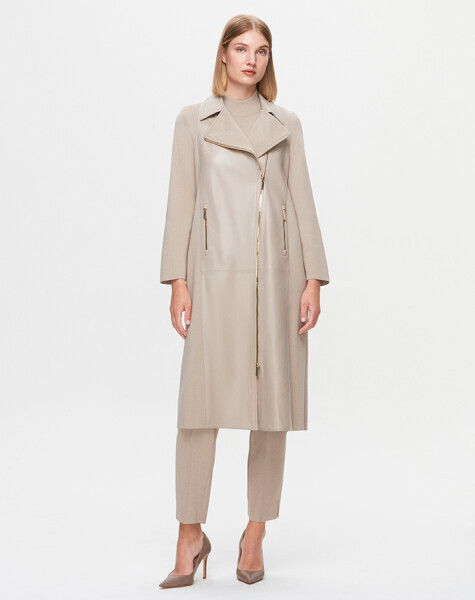 T25K-8011 Önü Deri Kuşaklı Uzun Ceket VİALE-GREY