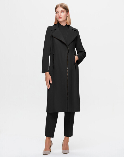T25K-8010 Önü Deri Fermuarlı Ceket BLACK