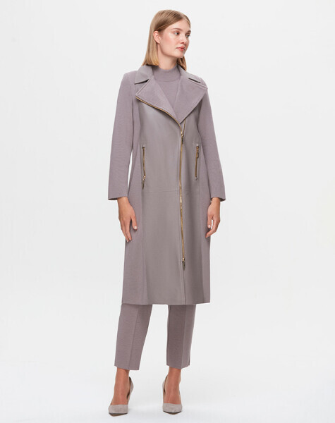 T25K-8010 Önü Deri Fermuarlı Ceket SCURE-MİNK