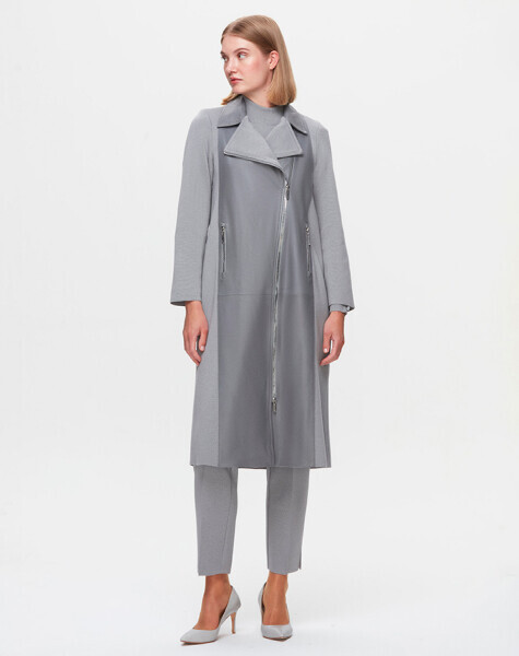 T25K-8010 Önü Deri Fermuarlı Ceket VİALE-GREY