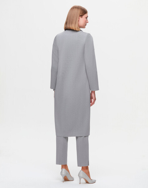 T25K-8011 Önü Deri Kuşaklı Uzun Ceket 8YR71-STONE