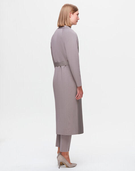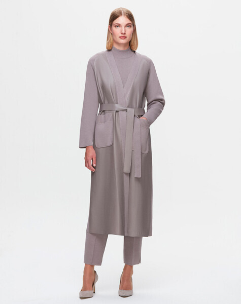 T25K-8011 Önü Deri Kuşaklı Uzun Ceket SCURE-MİNK