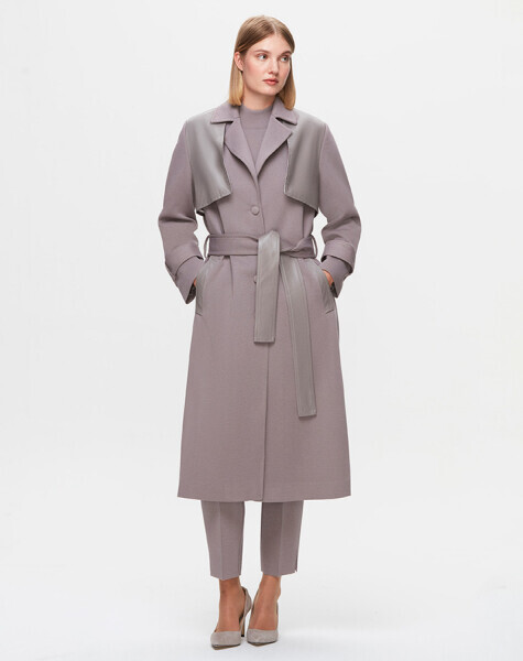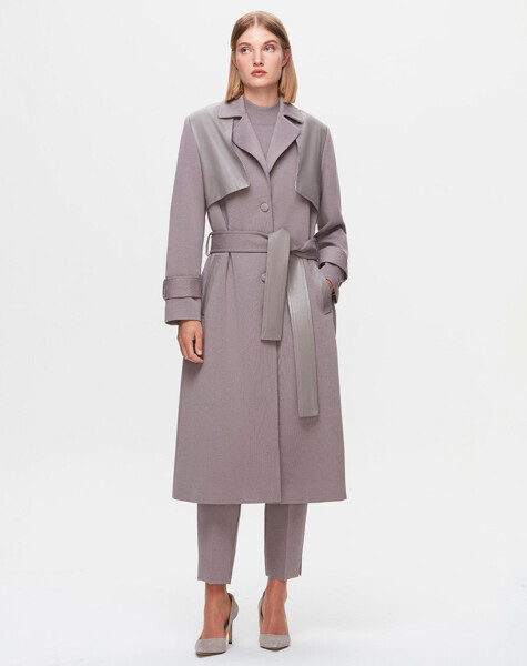 T25K-8013 Deri Detaylı Triko Ceket VİALE-GREY