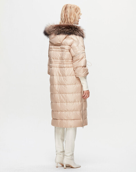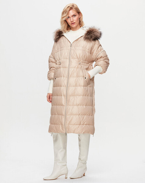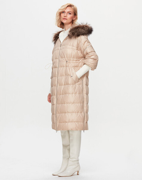 T25K-8018 Kapişonu Kürklü Şişme Mont BEİGE