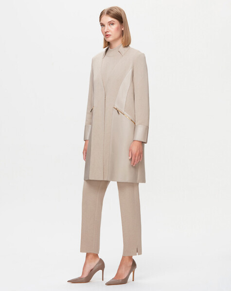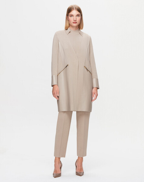T25K-8023 Deri Detaylı Triko Ceket 8YR71-STONE