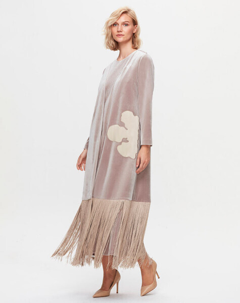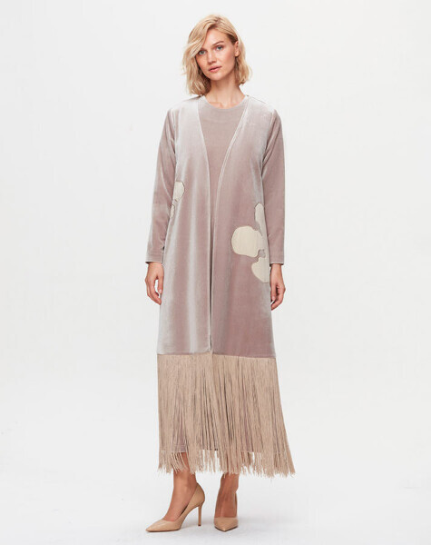 T25K-8029 Ucu Püsküllü Kadife Kap BEİGE