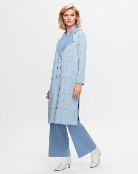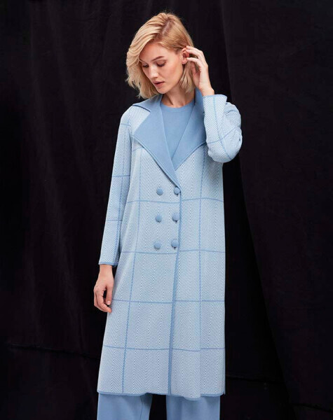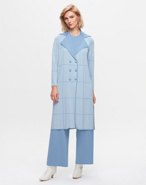 T25K-9001 Zigzag Desenli Uzun Hırka PB13E-BLUE
