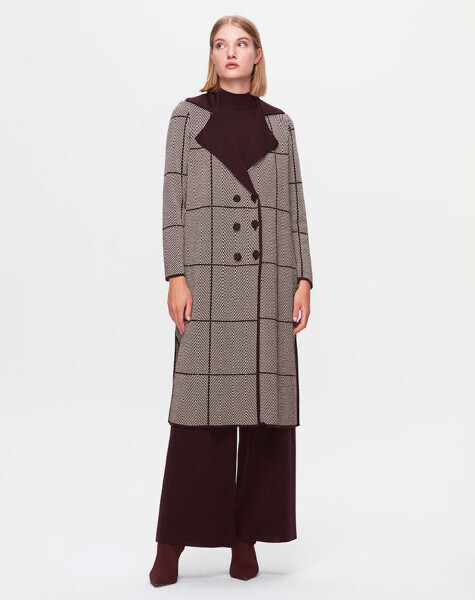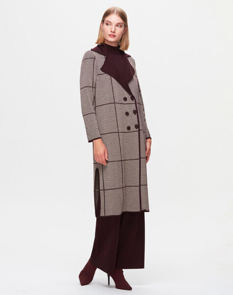 T25K-9001 Zigzag Desenli Uzun Hırka TROTA-OUBERGİNE