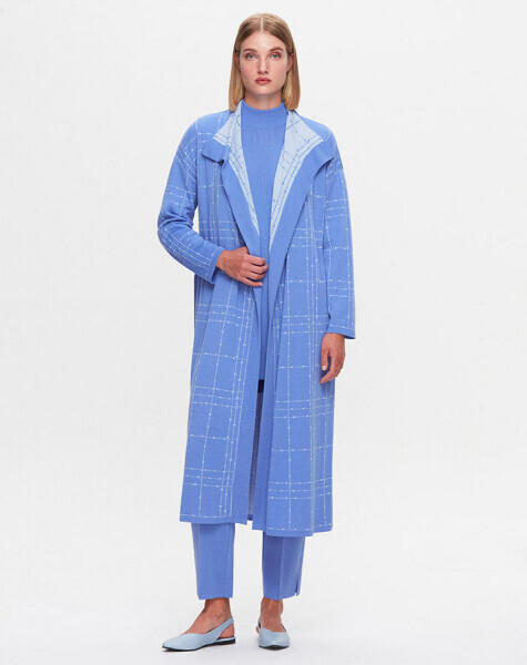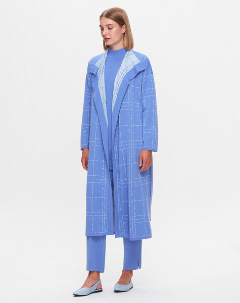 T25K-9002 Beli Kuşaklı Triko Hırka PANNO-SAPPHIRE