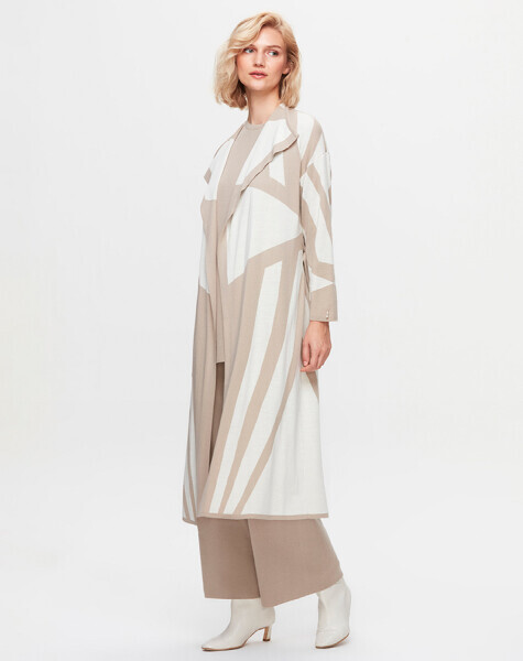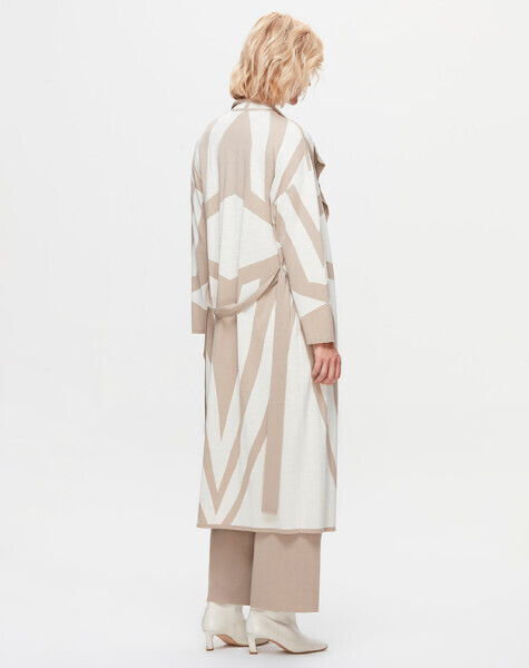 T25K-9005 Şal Yaka Desenli Uzun Hırka 8YR71-STONE