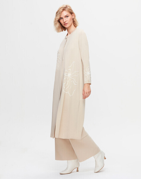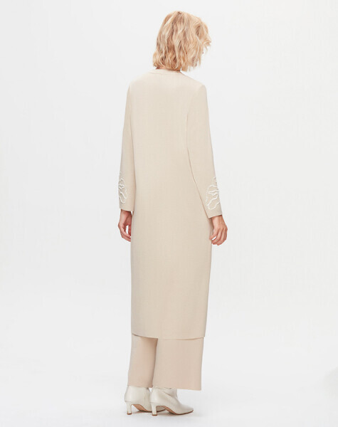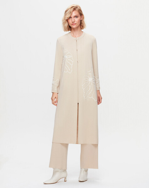 T25K-9008 Çiçek Desenli Agraf Kapama Uzun Hırka YY216-BEİGE