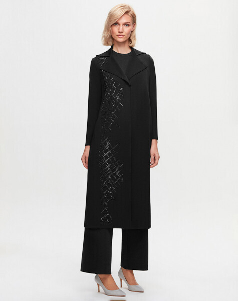 T25K-9011 Taş Detaylı Uzun Hırka BLACK