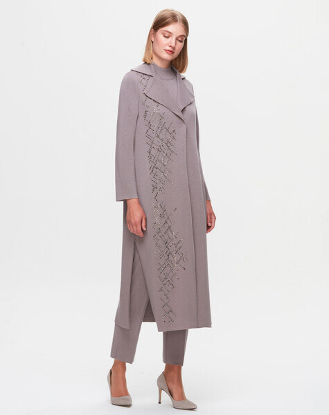 T25K-9011 Taş Detaylı Uzun Hırka SCURE-MİNK