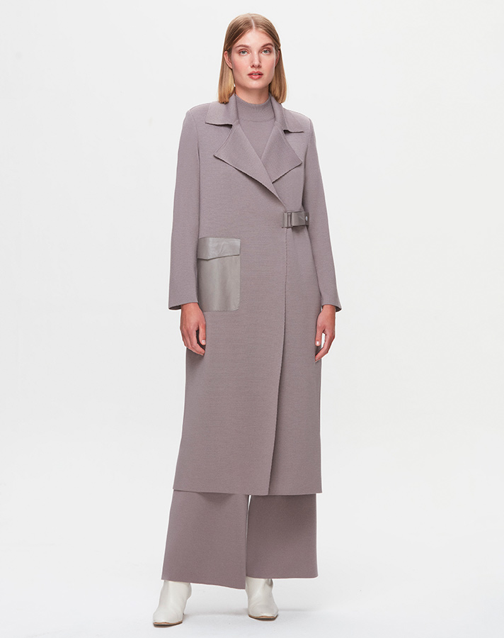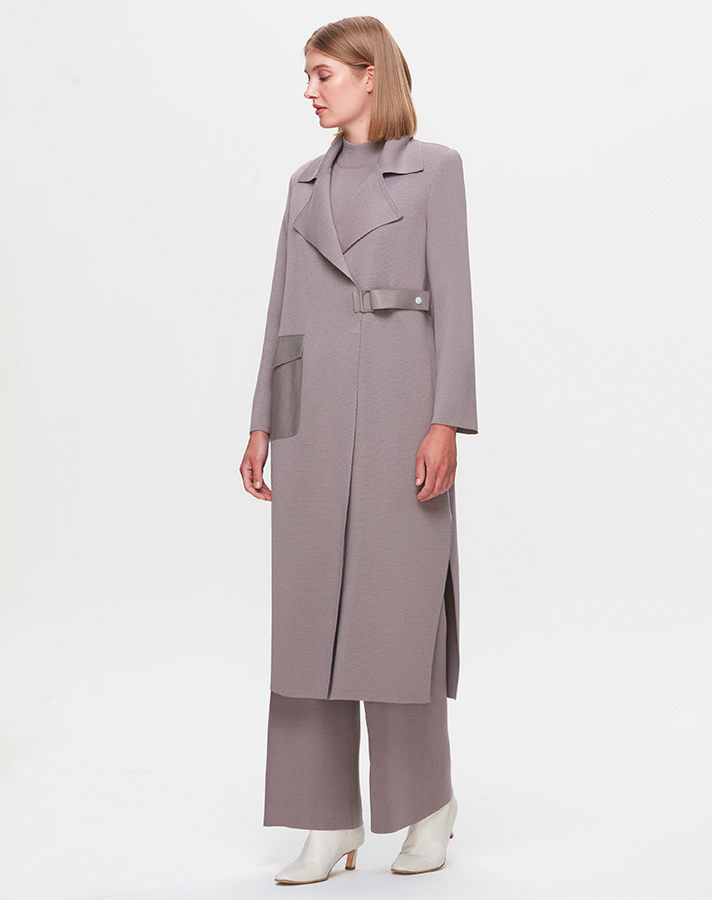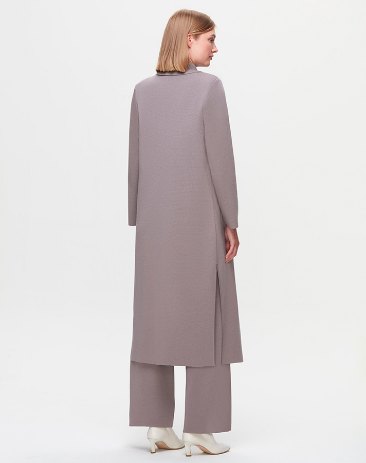 T25K-9003 Yaka Detaylı Agraflı Uzun Hırka VİALE-GREY