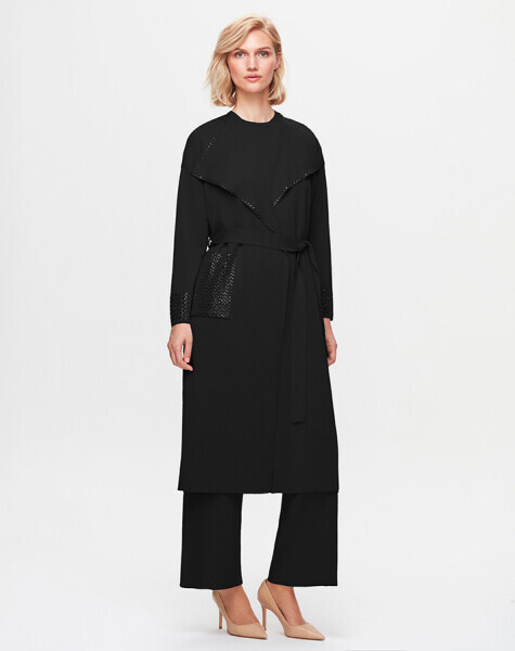 T25K-9013 Cebi ve Önü Yakası Detaylı Hırka BLACK