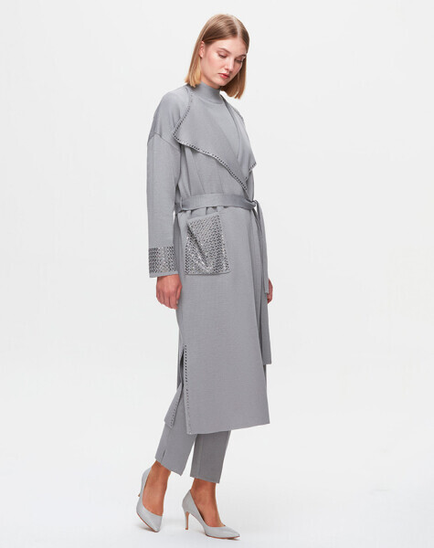 T25K-9013 Cebi ve Önü Yakası Detaylı Hırka VİALE-GREY