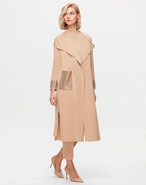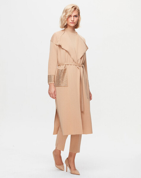 T25K-9011 Taş Detaylı Uzun Hırka YY216-BEİGE