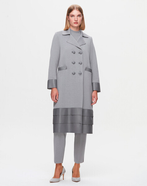 T25K-9003 Yaka Detaylı Agraflı Uzun Hırka VİALE-GREY