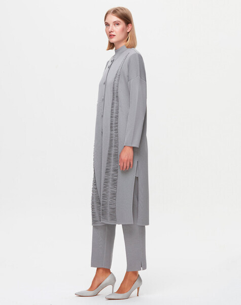 T25K-9016 Bekletme Detaylı Hırka VİALE-GREY