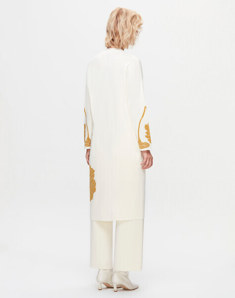 T25K-9017 Önü Çiçek Desenli Hırka FEDE-ECRU / DOTE-MUSTARD