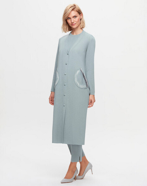 T25K-9007 Düz Renk Uzun Basic Hırka FARAD-GREEN