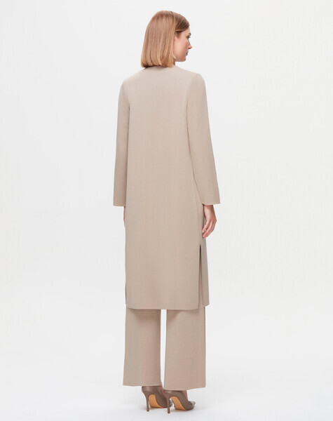 T25K-9021 Önü Keçe Baskılı Taş Rengi Hırka