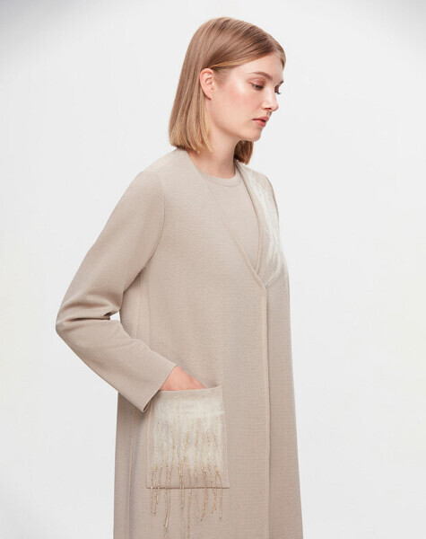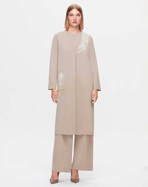 T25K-9021 Önü Keçe Baskılı Hırka 8YR71-STONE