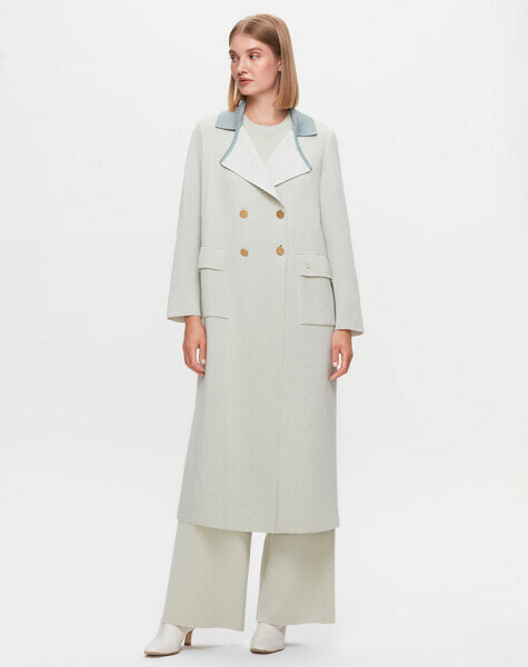 T25K-9003 Yaka Detaylı Agraflı Uzun Hırka VİALE-GREY