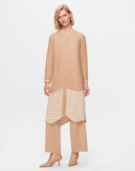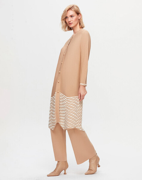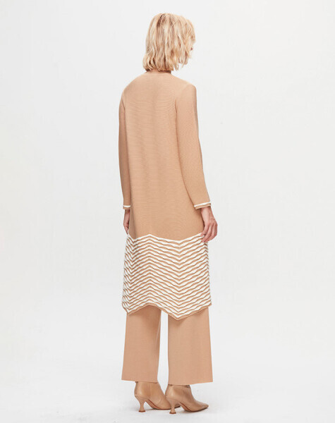T25K-9023 Etek Ucu Örgü Teknikli Hırka DIDO-BEİGE