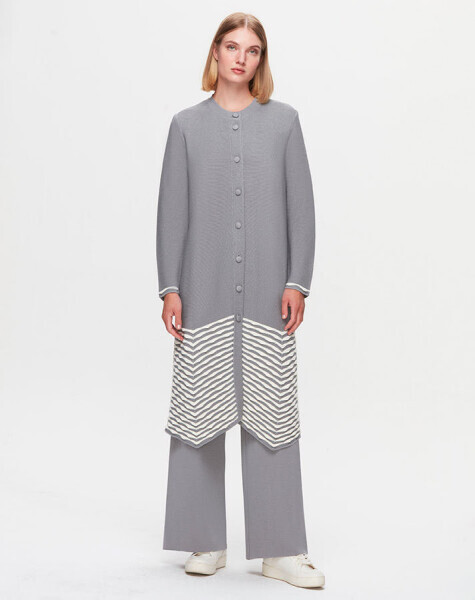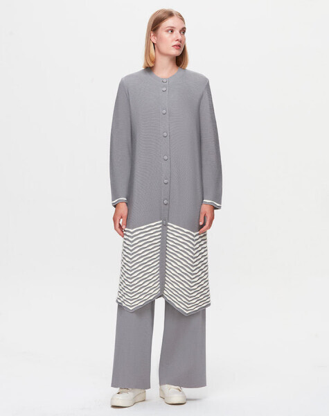 T25K-9023 Etek Ucu Örgü Teknikli Hırka VİALE-GREY