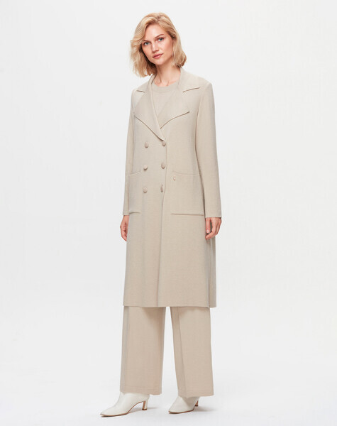 T25K-9024 Krvaze Kesim Triko Hırka BEİGE