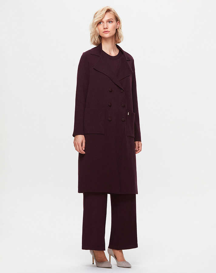 T25K-9024 Krvaze Kesim Triko Hırka OUBERGINE