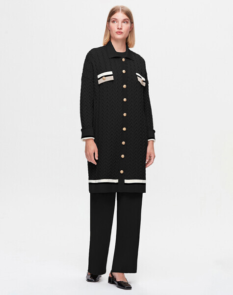 T25K-9025 Saç Örgü Düğme Detaylı Hırka BLACK