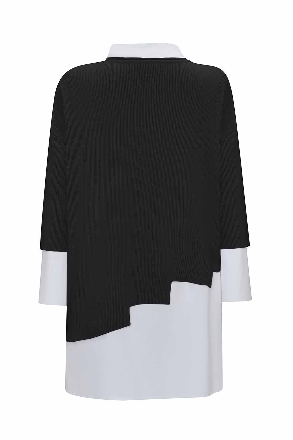 T25PF-0001 Asimetrik Kesim Triko Tunikli Takım BLACK / ECRU