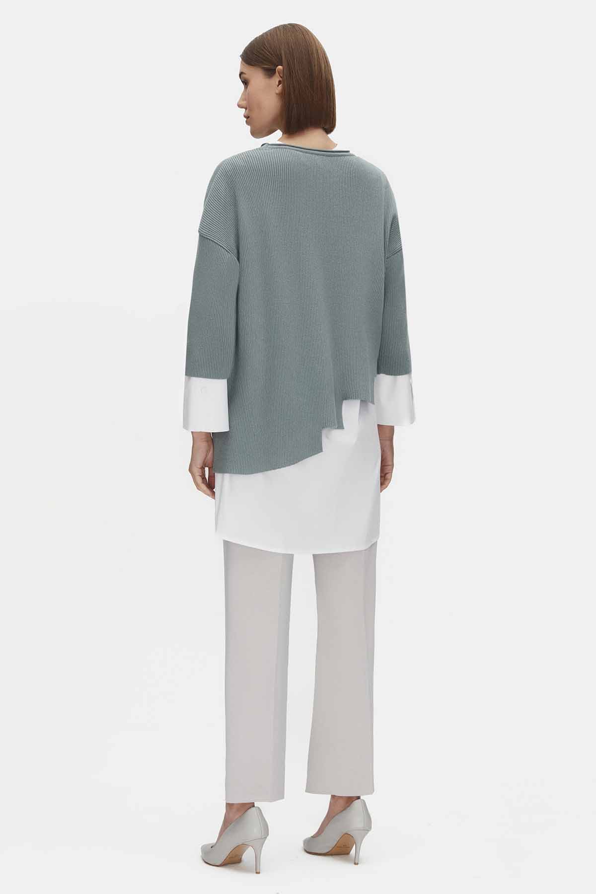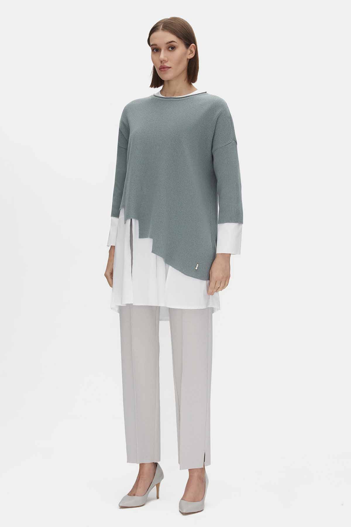 Asimetrik Kesim Triko Tunikli Çağla Takım