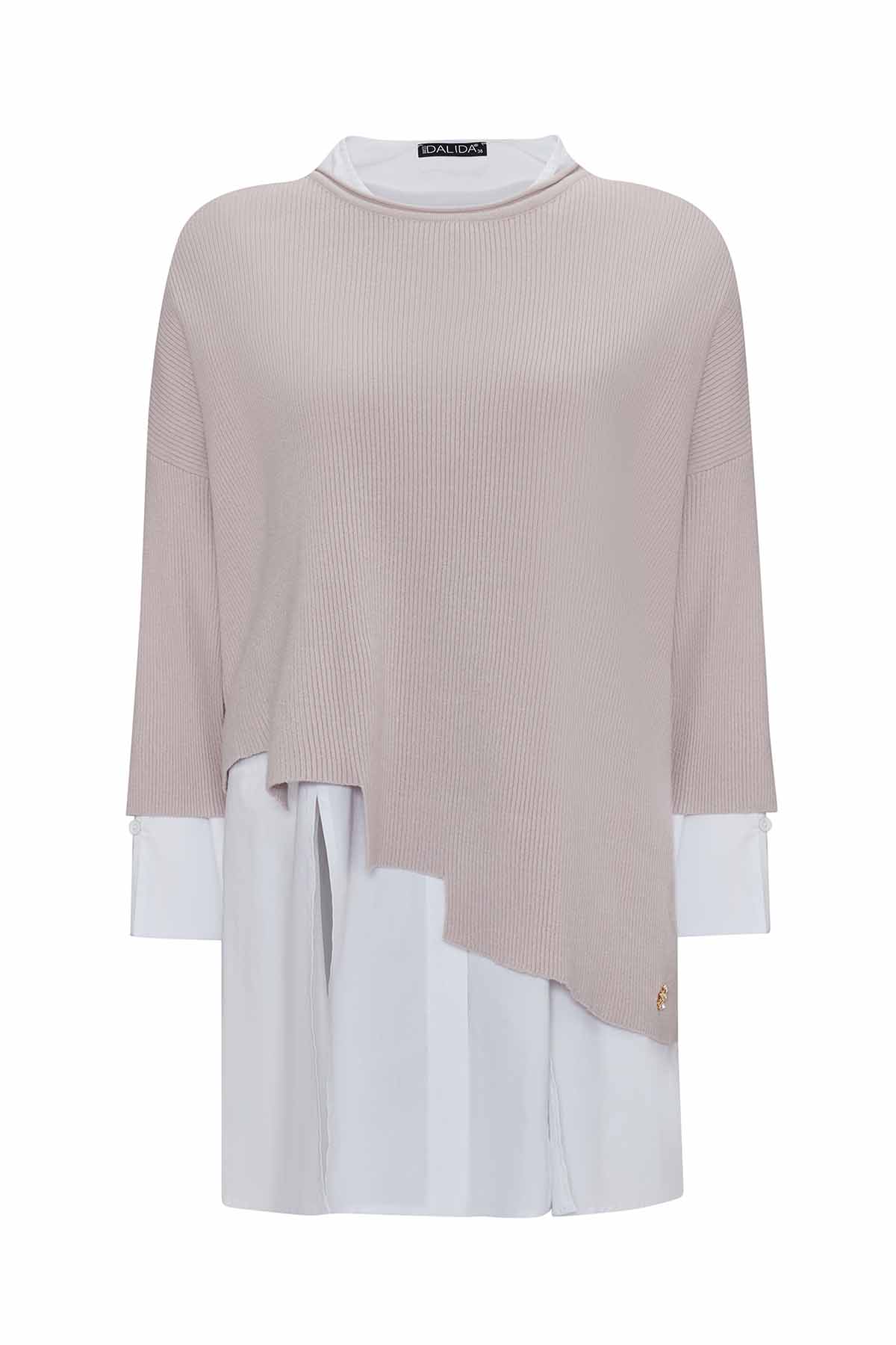 T25PF-0001 Asimetrik Kesim Triko Tunikli Takım STONE
