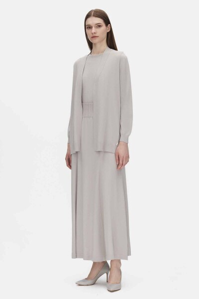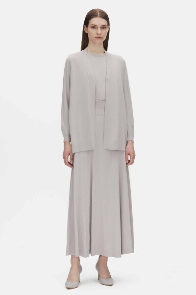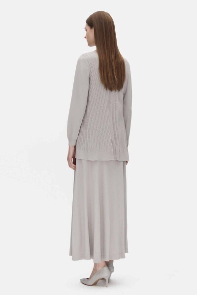 Arkası Örgü Motifli Hırkalı Gri Takım