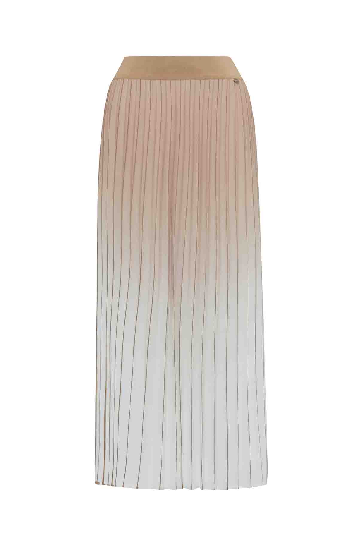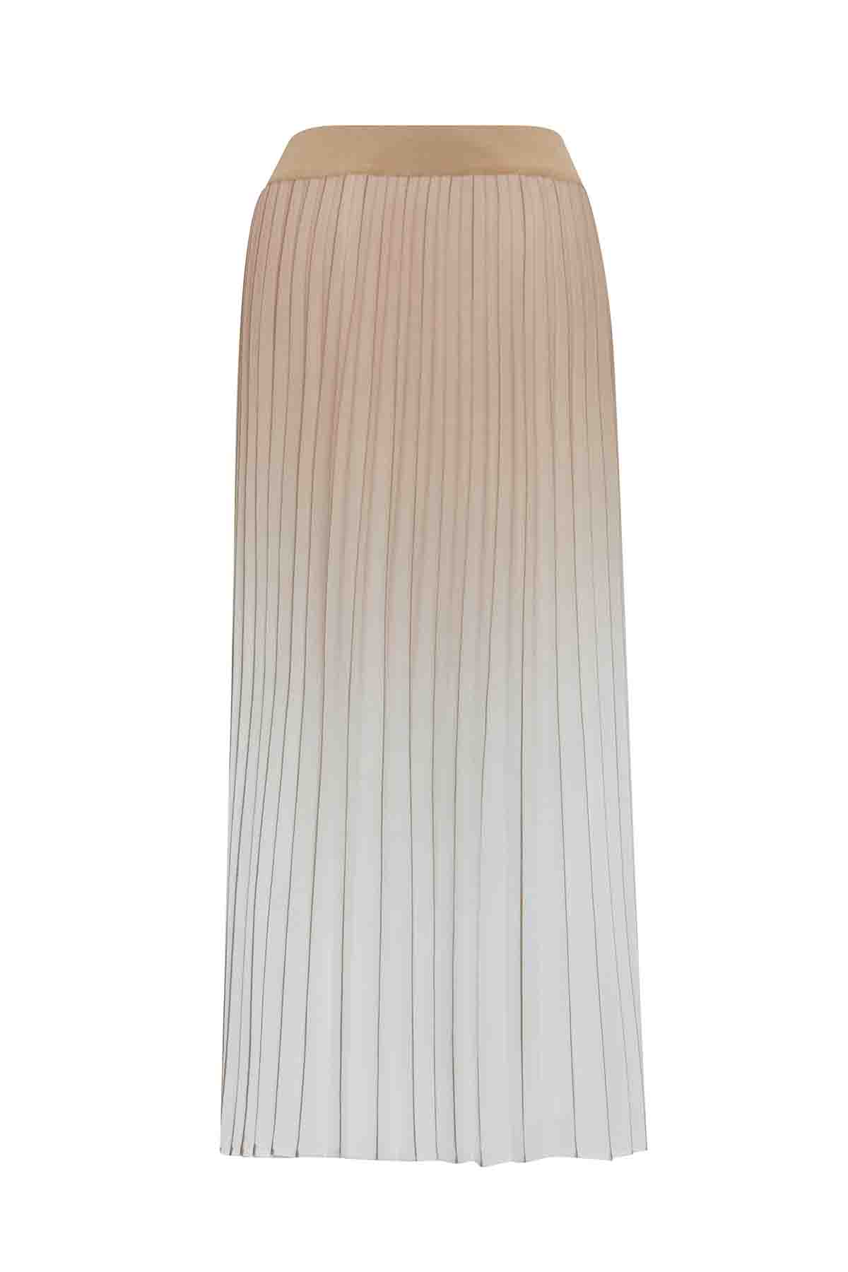 T25PF-2002 Degradeli Triko Plise Etek 1155-MINK