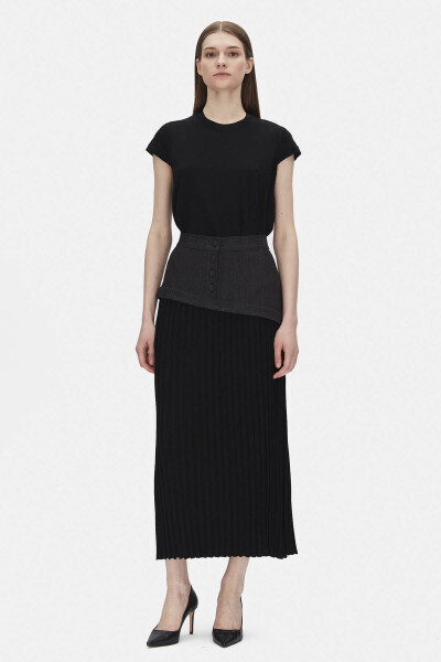 Düz Renk Plise Siyah Etek