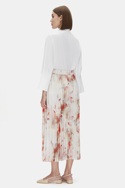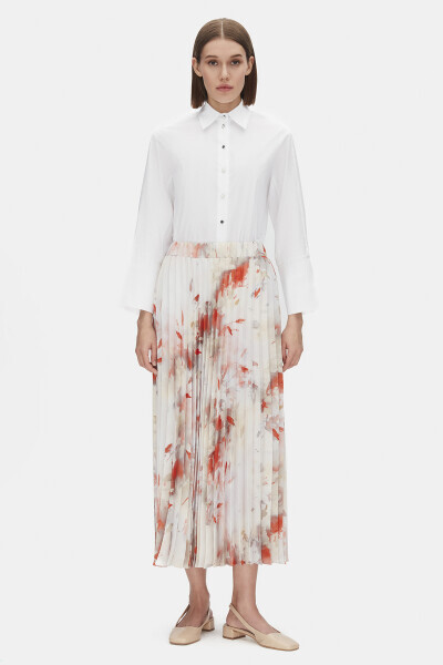 Desenli Plise Turuncu Etek