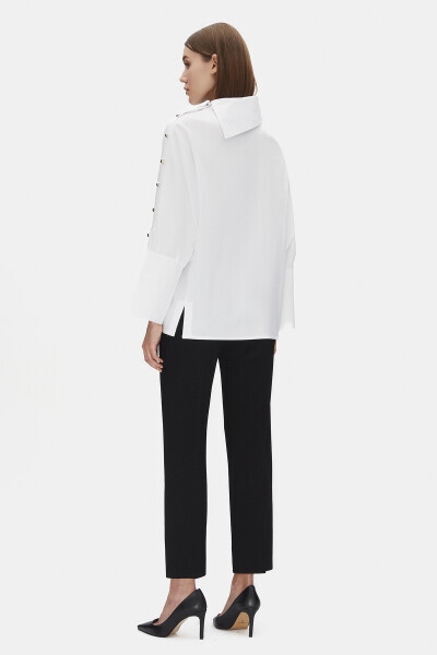 Yaka ve Düğme Detaylı Beyaz Poplin Ekru Gömlek