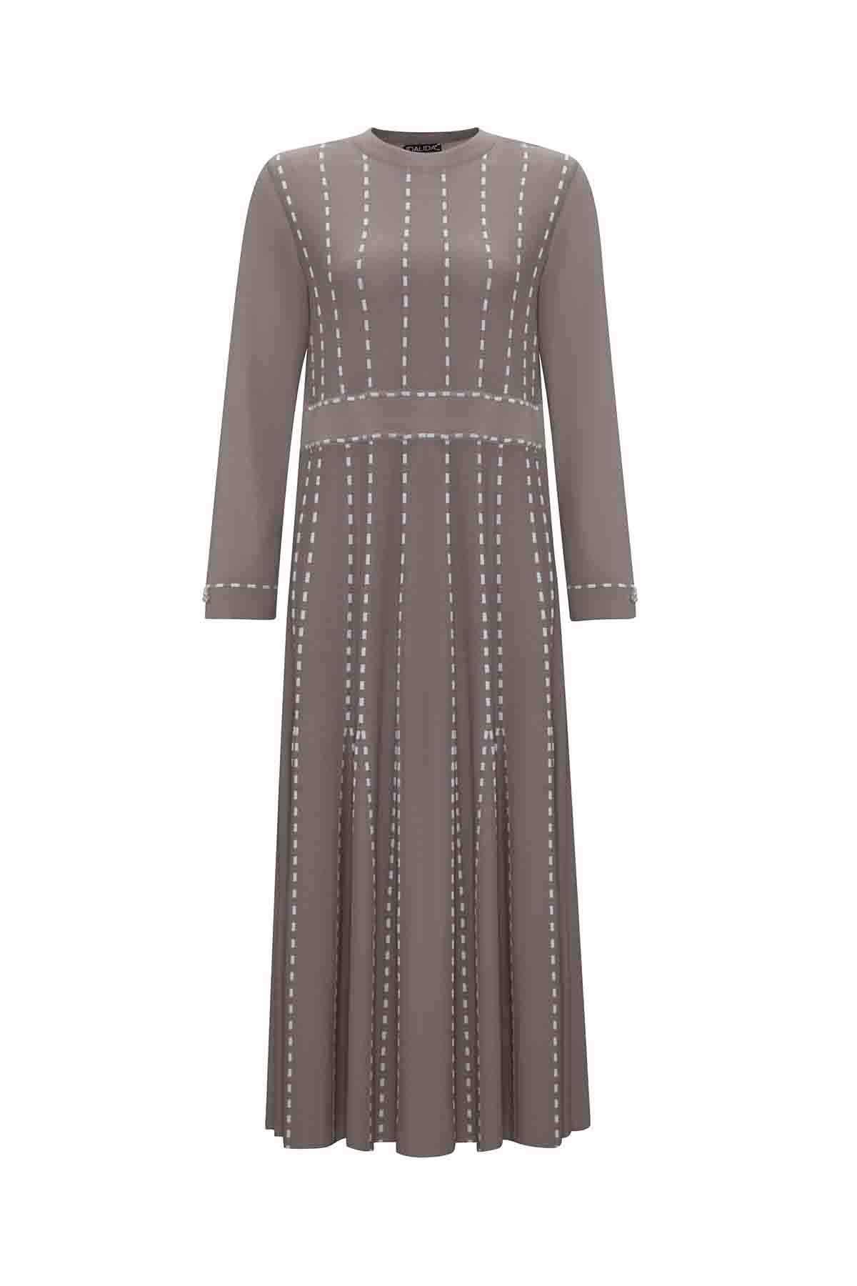 T25PF-4001 Örgü Teknikli Triko Elbise 1047-MİNK