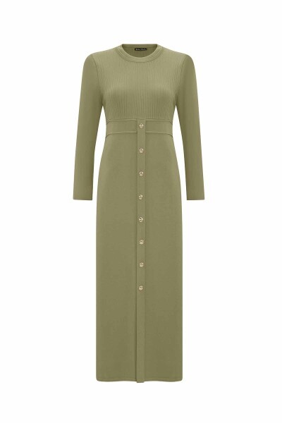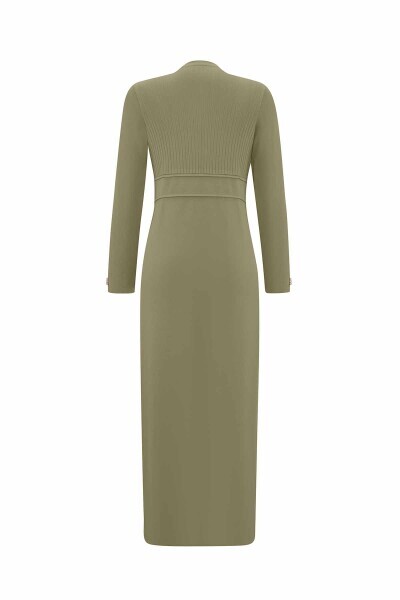 Yuvarlak Yaka Fitil Detaylı Yeşil Elbise