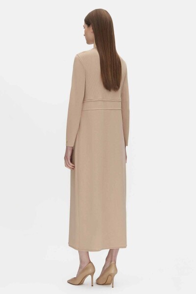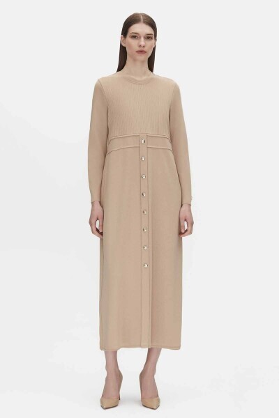 Yuvarlak Yaka Fitil Detaylı 1515-Camel Elbise