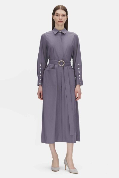 T25PF-4008 Gömlek Yaka Cepli Kumaş Elbise BULLET