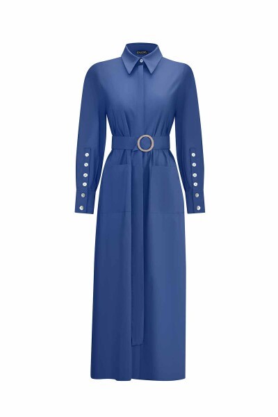 Gömlek yaka detayı ve pratik cepleriyle hem şık hem de işlevsel bir görünüm sunan bu kumaş elbise, günlük kullanımdan ofis şıklığına kadar geniş bir kullanım alanı sunar. Hafif ve dökümlü kumaşı sayesinde rahat bir kullanım sağlarken, klasik duruşuyla her gardıropta yerini alacak özel bir parçadır.