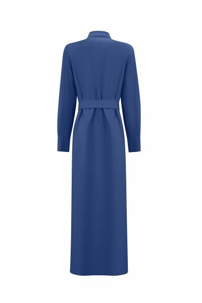 T25PF-4008 Gömlek Yaka Cepli Kumaş Elbise İNDİGO